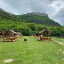 Если вы хотите провести корпоратив в предгорном Крыму то беседки возле озера у подножья пещерного города Мангуп-Кале подходящий вариант.