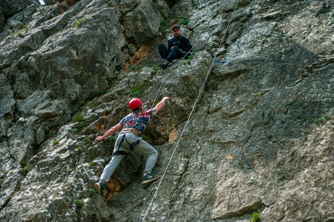 - восхождение на скалу с применением альпинистского снаряжения