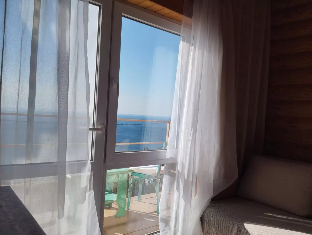 Квартира в деревянном срубе в Алупке с видом на море.